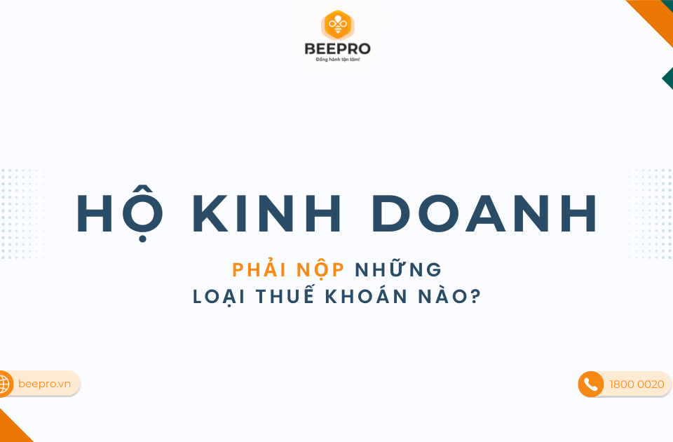 Tháng 9 20, 2025 Tháng 9 20, 2025Danh mục UncategorizedHỘ KINH DOANH CẦN NỘP NHỮNG LOẠI THUẾ NÀO?Từ 2025, hộ kinh doanh cần nắm rõ các loại thuế bắt buộc để vận hành đúng luật, tránh rủi ro tài chính và pháp lý. BeePro hướng dẫn chi tiết